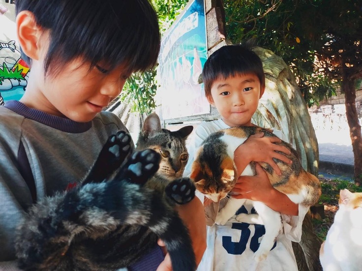 先日、菊池分校の子どもたちは熊本県上天草市の湯島(通称 猫の島)に見学旅行&猫カレンダー撮影に行って来ました/•᷅•᷄\੭