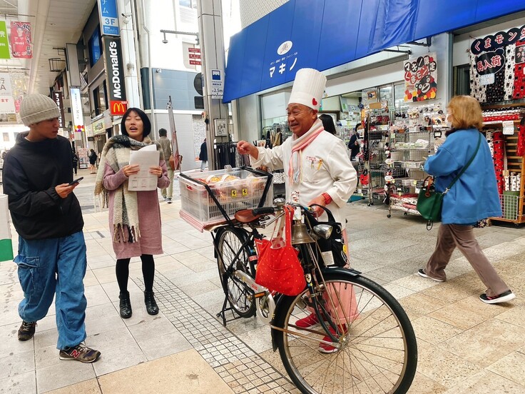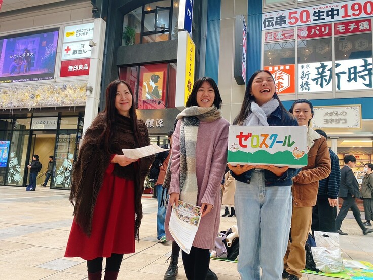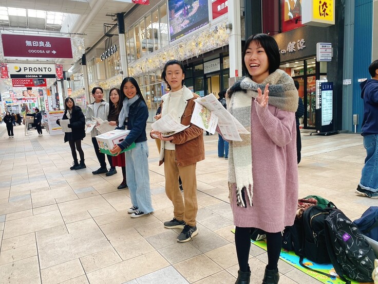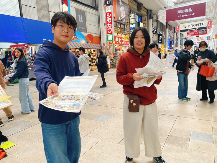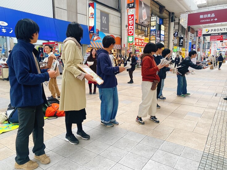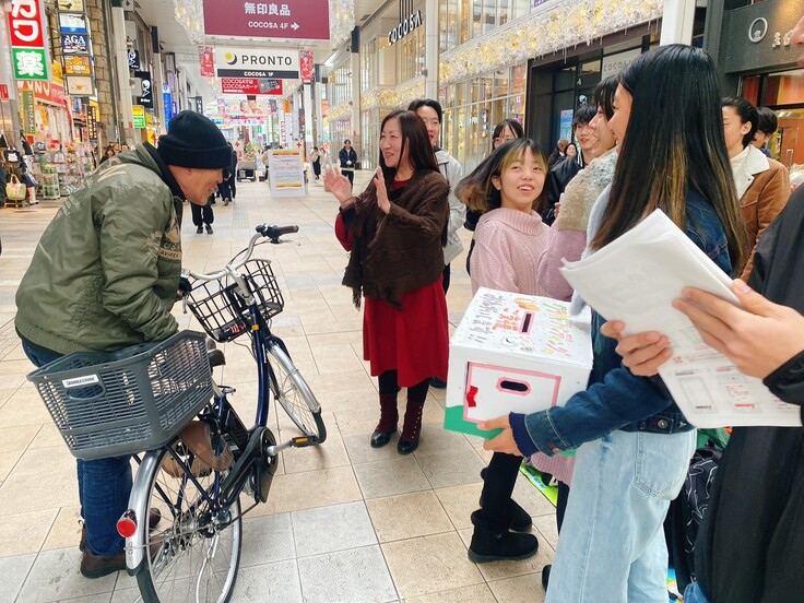 子どもたちと一緒に熊本市下通りアーケードでクラファン街頭PR♡