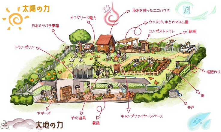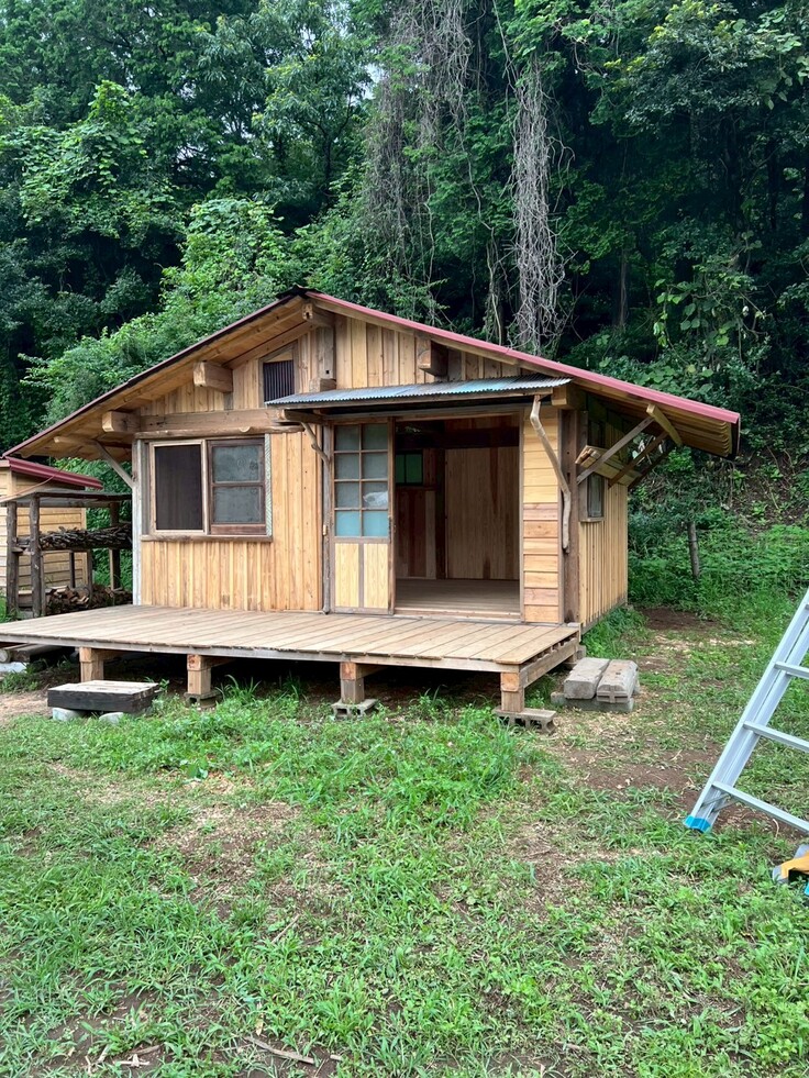 畑やオフグリッド電力、大きなファイヤースペース、かまど小屋、井戸から水も引きこれからの展開にワクワク♡