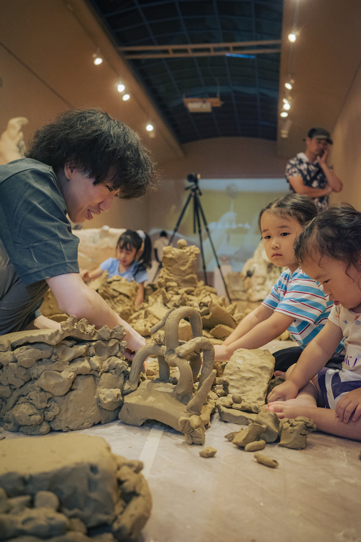 また「ねんどやきもの劇場 2024」展では、子どもたちが6トンの粘土を使って自由に遊べるワークショップを開催しました。今後もワークショップをはじめ、子どもの造形遊びを撮影する機会を作るとともに、人間の創造性を探究するためにその様子を映像表現として残すことを目指しています。