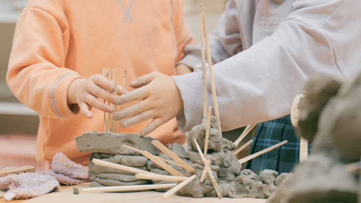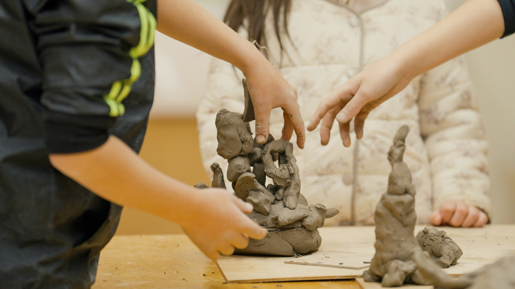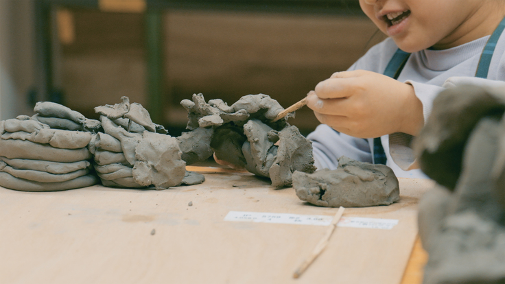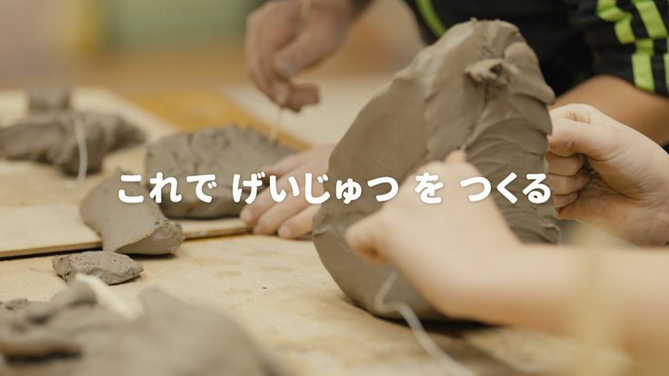 粘土と向き合う子どもたちの姿を捉え、創造プロセスにおける思考や言語と、身体のインタラクションを映像として記録し、その豊かな創造性を映像作品として昇華させました。