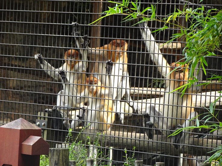 職員がたくさん集まっていたからか、興味津々で集合するテングザルたち(笑)