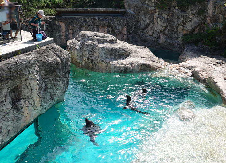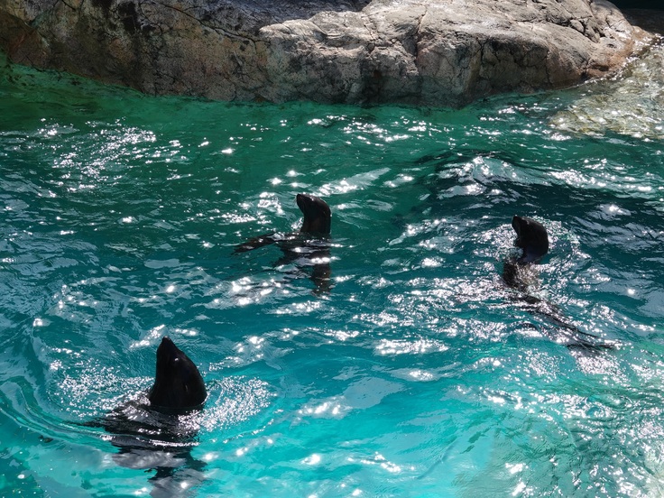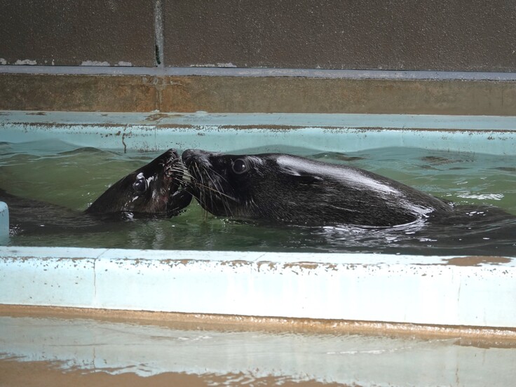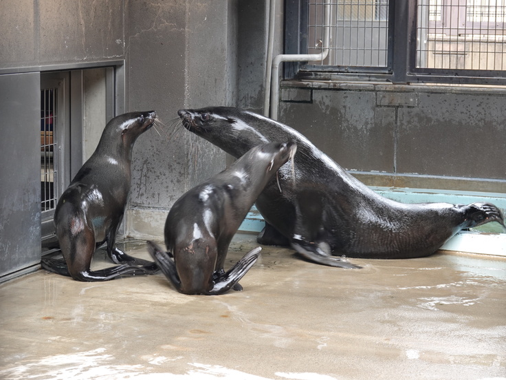 1頭増えてにぎやかになったミナミアフリカオットセイたち。
