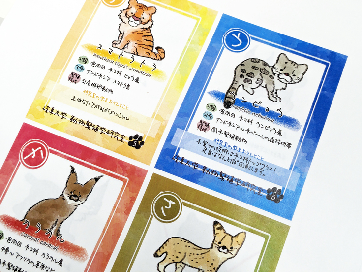 ●トレーディングカード35種類セット(カードサイズは約8.8×6.3cm、イラストは学生作)
