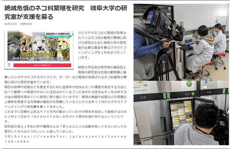 絶滅危惧のネコ科繁殖を研究 岐阜大学の研究室が支援を募る|NHK 岐阜県のニュース 2月21日