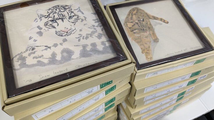木版画 A(スマトラトラ),C(ツシマヤマネコ Ver.2),E(ユキヒョウVer.2 )に若干在庫があります。クラファンは終了していますが,岐阜大学への直接の寄付の仕組みもありますので,追加や新規のご寄付をいただけるようでしたら,5/20までに楠田までご連絡ください。岐阜大学への寄付は,寄附金税額控除の適用対象です。