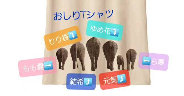 おしりTシャツは、正面は結希&りり香のお鼻つなぎ裏面はみんなのお尻です。