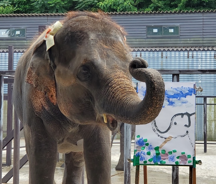 明日6月12日(月)オスゾウ「結希」9歳のお誕生日に合わせて「ゆめ花」「りり香」が描いた『結希とアジサイ』の原画をクラウドファンディング追加リターンを午後アップ予定です。