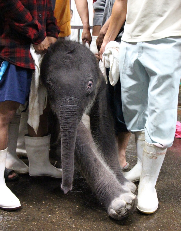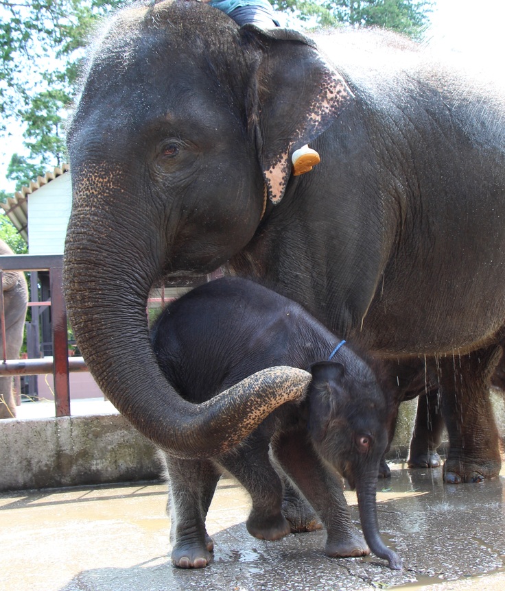 出産まで当園のゾウ達と一緒に穏やかな日々を過ごしたズゼは、2014年6月12日午前2時半すぎに、 大勢のスタッフが見守る中、体重142kg、 体高106cm、 体長110cm のとても大きな男の子を出産しました。産声を上げた瞬間、待望の出産に、ゾウもスタッフも沸き立った瞬間でした。そのオスゾウが「結希」です。