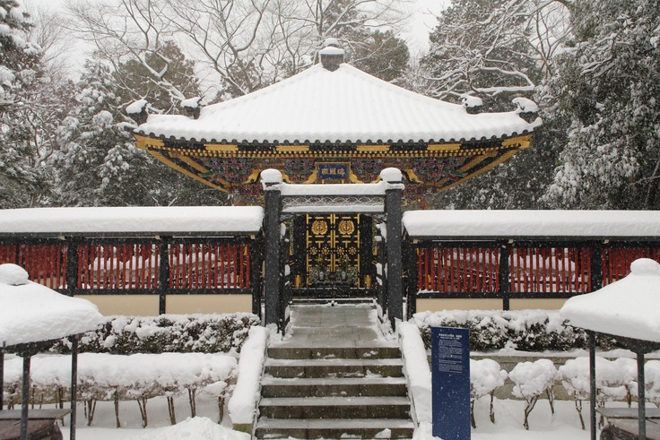 雪化粧をまとった本殿は、この時期ならではの景色です。